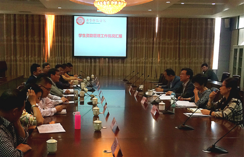 10月14日,省教育厅、财政厅高校学生资助工作专项督查专家组一行4人对贝博官网学生资助工作进行督导、检查。学校在图书馆会议室召开了学生资助工作汇报会。专家组组长山东科技大学学生工作处副处长吴正龙,专家组成员青岛酒店管理职业技术学院资助中心科长赵桂珍、山东工商学院学生资助管理中心主任于培超、青岛科技大学核算科科长马艳莉,王海副校长出席会议,校学生资助工作领导小组成员参加汇报会。