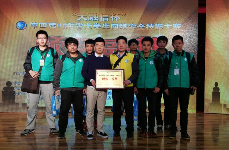 11月1日,由共青团山东省委、山东省互联网信息办公室、山东省经济和信息化委员会、山东省教育厅、山东省通信管理局、山东省学生联合会主办,中国信息安全认证中心协办,山东信息协会、中国信息安全认证中心山东分中心承办的第四届山东省大学生信息安全知识竞赛在济南大学完满结束。贝博官网信息科学与工程学院学生组成的校代表队和多名信息技术爱好者参加比赛,最终喜得团体三等奖的好成绩,张玉泉老师、王飞超老师被评为“省级优秀指导教师”,张恒悦老师被评为“省级优秀领队”。