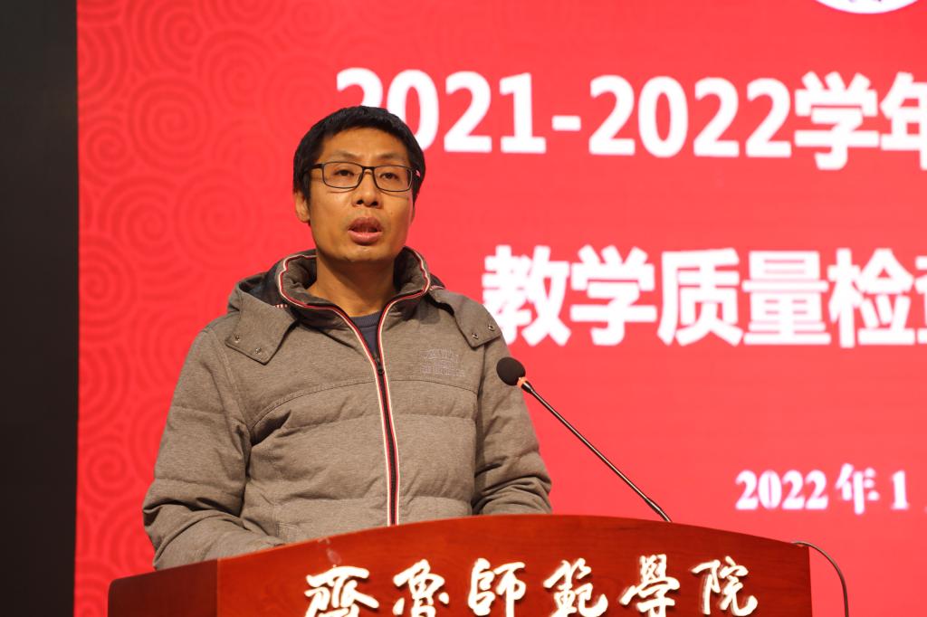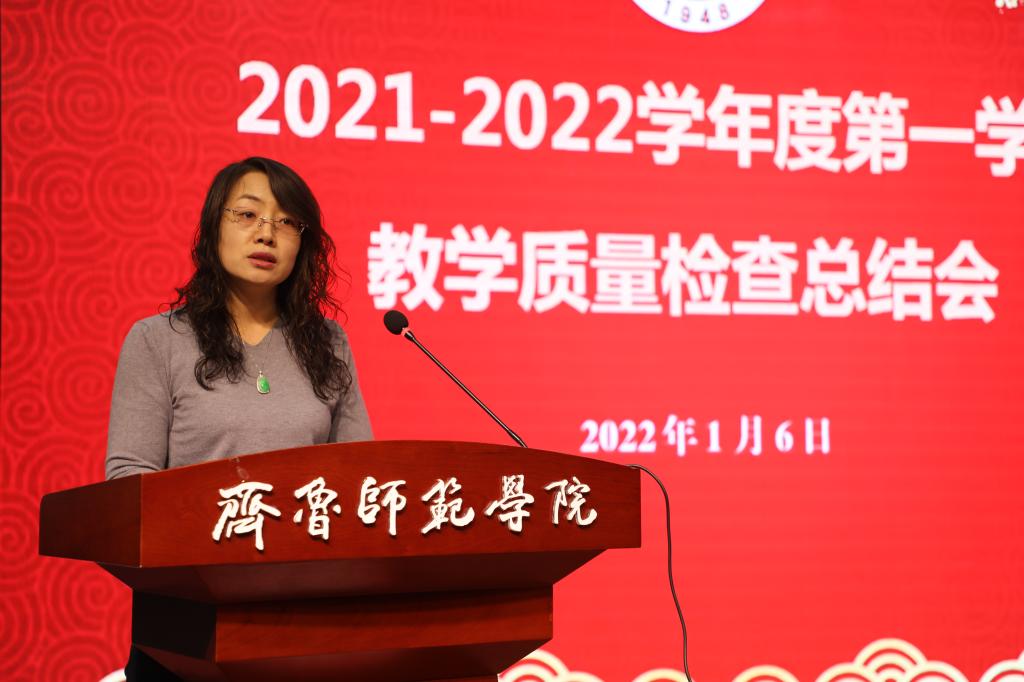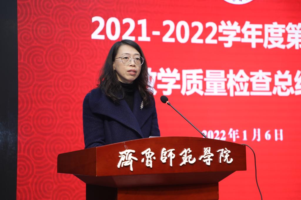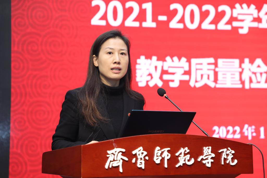 2022年1月6日下午,贝博官网在章丘校区图书馆学术报告厅召开2021-2022学年度第一学期教学质量检查工作总结会。党委副书记、校长林松柏主持会议并讲话,全体校级督导员,各二级学院院长、副院长,各教研室主任、副主任,教务处负责人及相关人员,教学质量监控与评估处全体人员参加了会议。