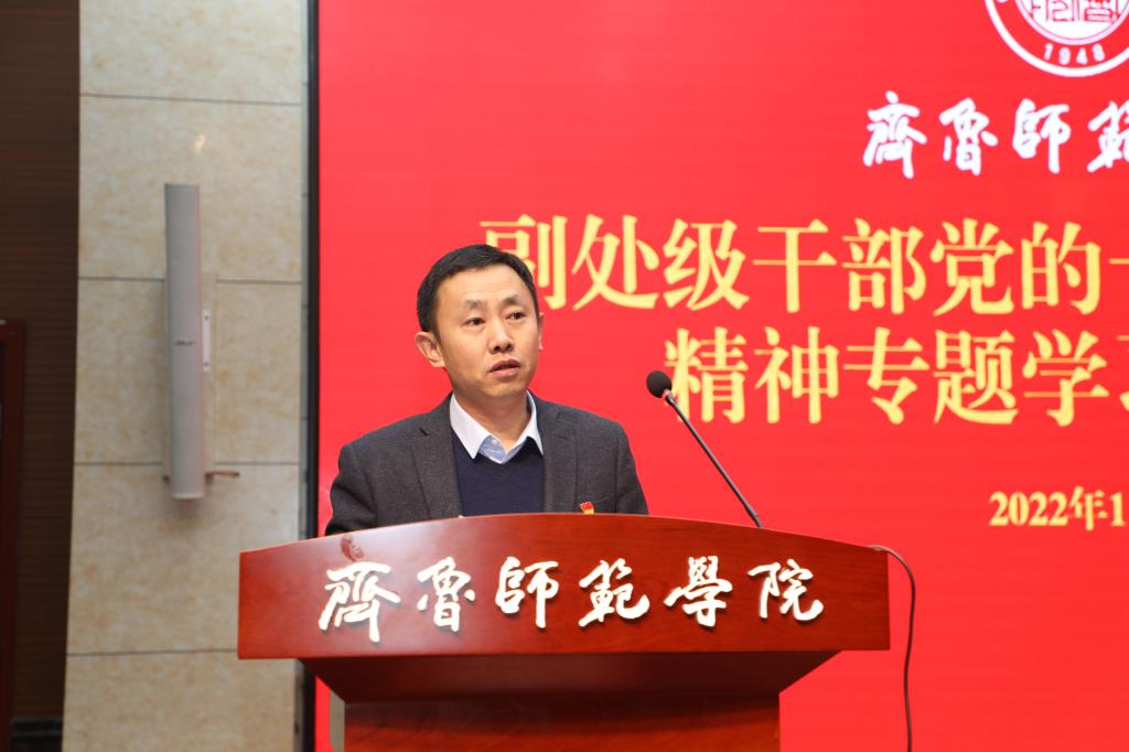 1月12日下午,在章丘校区学术报告厅举行了副处级干部党的十九届六中全会精神专题学习班结业式。党委书记王玉华出席仪式并讲话,全体学员参加了仪式。结业式由党委委员、组织部部长李伯伟主持。