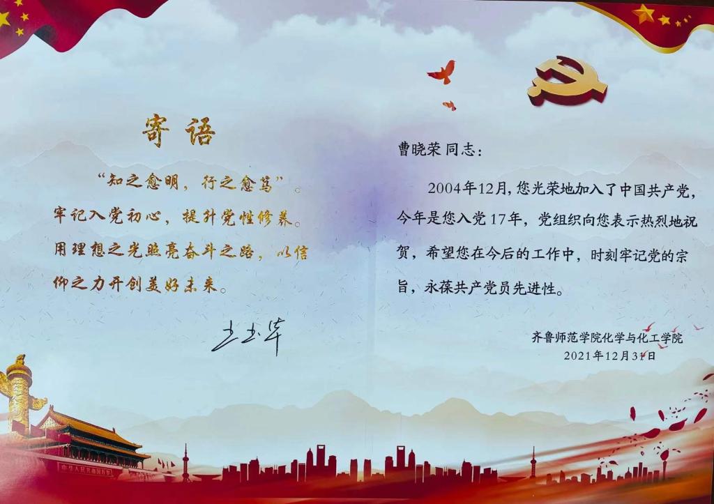 为筑牢党员意识,加强党性修养,铭记党的宗旨和入党初心,12月31日下午,化学与化工学院党总支开展“党员政治生日”主题党日活动。校党委书记王玉华为化学与化工学院12月过政治生日的11名党员,给予了祝福和希冀的寄语:“‘知之愈明,行之愈笃’。牢记入党初心,提升党性修养。用理想之光照亮奋斗之路,以信仰之力开创美好未来”。王玉华指出,全体党员要坚定理想信念,增强党性修养,敢于担当作为,发挥党员先锋模范作用,为学校事业发展贡献力量。